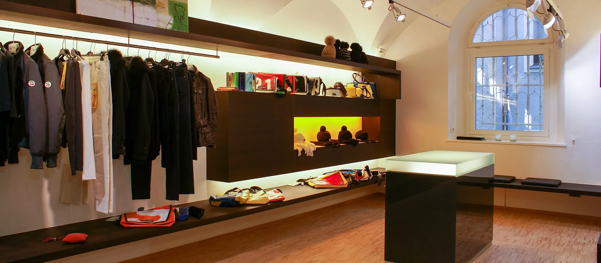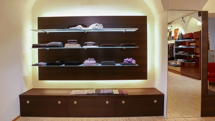 Für das exklusive Modegeschäft Tschurtschenthaler in Bruneck haben wir eine Einrichtung in Zusammenarbeit mit Herrn Architekt Moser gefertigt, die die Wertigkeit der angebotenen Kollektion auch räumlich erlebbar macht. Dunkles Holz, präzise Verarbeitung und eine klare Formensprache schaffen eine elegante, ruhige Atmosphäre, in der Mode stilvoll präsentiert wird. Die maßgefertigten Möbel fügen sich harmonisch in das alte Gemäuer ein und unterstreichen den Anspruch an Qualität – im Sortiment wie im Raum.