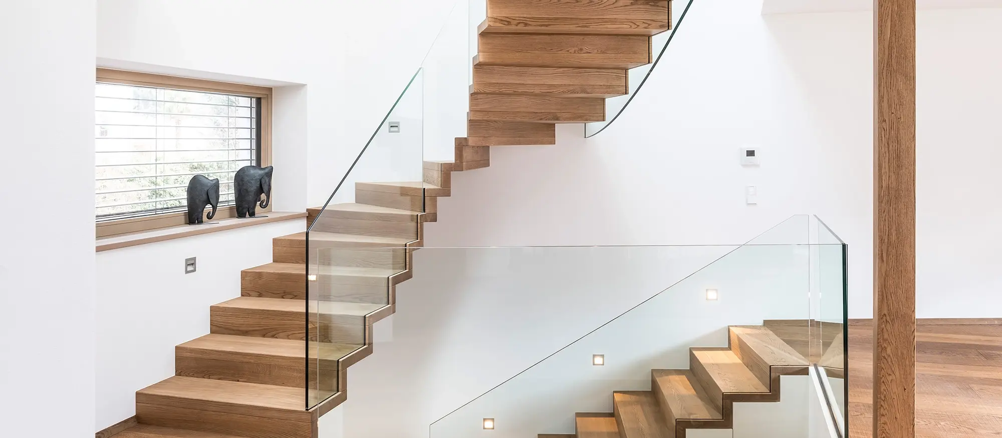 Die Kombination dieser Materialien schafft spannende Kontraste – z. B. eine Holzwangentreppe mit Glasgeländer, eine schwebende Betontreppe mit Holzauflagen oder eine filigrane Stahlkonstruktion mit offenem Charakter.