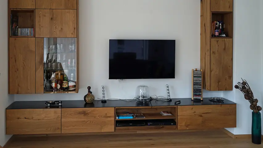 Das moderne Wohnzimmer steht für klare Linien, offene Räume und stilvolle Wohnkonzepte. Ob großzügige Wohnwand mit viel Stauraum, elegantes TV-Möbel mit versteckten Kabelkanälen, offenes Regal, eine Sofalandschaft oder ein stilvoller Couchtisch aus Eiche, Lärche oder Nussbaum – wir fertigen genau das, was dein Wohnzimmer braucht.